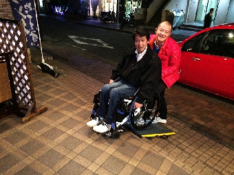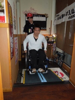 店のママさんは福祉活動にも理解のある方で、車椅子の方以外にも、ベビーカーのお客さまやお年寄りの方にも便利になると、喜んでいただきました。