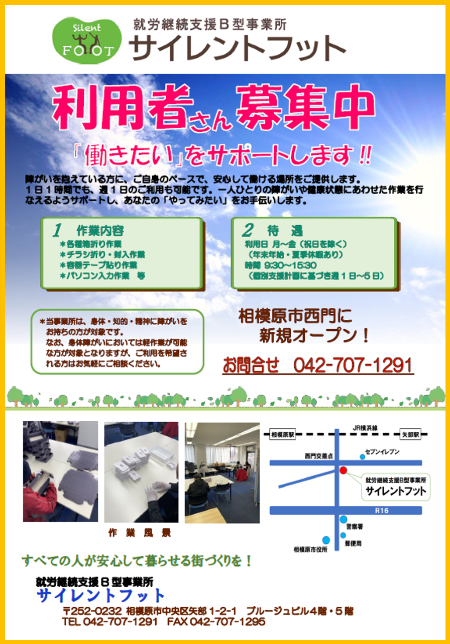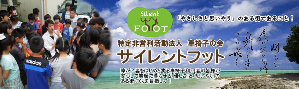 - 特定非営利活動法人車椅子の会サイレントフットでは、障がい者の自立を応援し、障がい者が安心して外出できる地域社会の環境作りを目的として活動しております。
